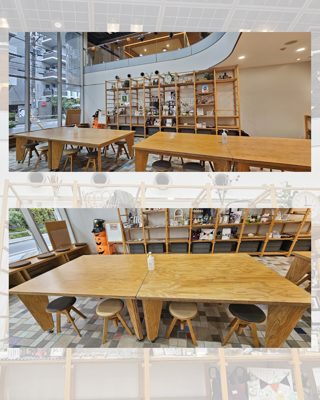 ブース数、30前後のイベントとなります。 申込フォームに第1~第3希望のブース番号をご記入ください。 ※菓子販売ブースの受付は満席のため終了いたしました ↓ ↓ ↓ ↓ ↓ ↓ ↓ ↓ ↓ 【1階】会場入口ブース(きらきら) (ワークショップ・販売ブース) ≪各1ブース3,500円≫ ①120✖140テーブル(丸イス4脚) ②120✖140テーブル(丸イス4脚)2ブース ※①②のテーブルがくっ付いています ③窓際150✖45テーブル (3人用長椅子✖1・イス2脚) ④窓際180✖45テーブル (3人用長椅子✖1・イス2脚) 【2階】 ≪各1ブース 3,500円≫ 階段上がったすぐのフリースペース (占い・リーディングコーナー)満席 ※テーブル調整中 ⑤A・テーブル(イス2脚~4脚) ⑤A・テーブル+丸テーブル(イス2脚~4脚) ⑤B・90㎝丸テーブル+55㎝丸テーブル/2ブース (長椅子3人掛け+椅子1~2脚) 中央A(ぺちゃくちゃリビング) (販売・展示) ⑥カウンターテーブル(壁に接しています)(イス4脚) (販売・ワークショップ) ⑦180✖45テーブル(イス4脚) ⑧座卓テーブル 110㎝丸テーブル(座布団) ⑨座卓テーブル 90㎝丸テーブル(座布団)1ブース ⑩座卓テーブル 75✖75四角テーブル(座布団)5ブース ※⑩こども出店者様は500円(座布団) ※⑩は2テーブル合わせて使用可能(4,500円) 中央B(のびのび土間) (販売・ワークショップ) ⑪140✖70テーブル(長椅子✖2)残1ブース ・・・・・・・・・・・・・・・・ 中央奥(ぺちゃくちゃリビング) (施術ブース) ⑫畳 4,500円 調整中 ※施術台の持ち込み禁 ※施術用マットはご自身でご用意ください ※2名での使用も可能です(1名2,500円) 奥(すくすくダイニング) (販売・ワークショップ) ⑬160✖90テーブル(4人掛け)2ブース/各4,000円 ※飲食調理販売がございます。調理の香りが気になる方は別ブースをお申込みください |